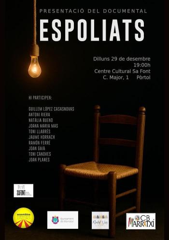1 Tweet Facebook Balears » Balears ASM Presentació del documental ‘Espoliats’ al Centre Cultural Sa Font de Pòrtol dBalears 27 desembre 2025 El pròxim dilluns, dia 29 de desembre, a les 19 hores,