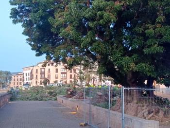 La cadena humana de veïns no aconsegueix aturar l'extermini dels bellaombra de la plaça Llorenç Villalonga