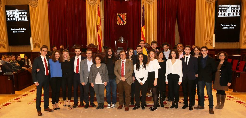 El Parlament ha acollit la final de la Lliga de Debat de la Universitat de les Illes Balears i s'han proclamat els guanyadors. El president del Parlament, Baltasar Picornell, i el rector de la UIB, Llorenç Huguet han lliurat els premis.