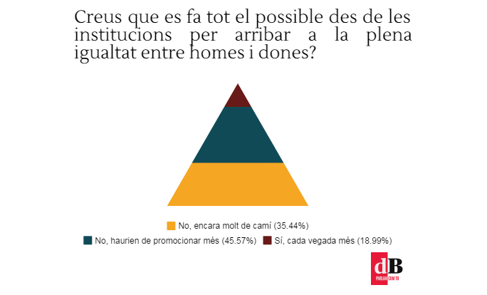 Només el 18.99% ha considerat que les institucions fan tot el possible per promocionar la igualtat i que la consciència social cada dia és més gran.