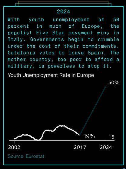 En la tradicional ?guia pessimista?, on es projecten situacions a partir de patrons pessimistes, del portal econòmic nord-americà Bloomberg es preveu que la independència de Catalunya sigui l?any 2024. En 2015 aquest portal va apuntar, amb aquesta fórmula, l?elecció de Donald Trump. Moltes altres vegades no s?ha encertat.
