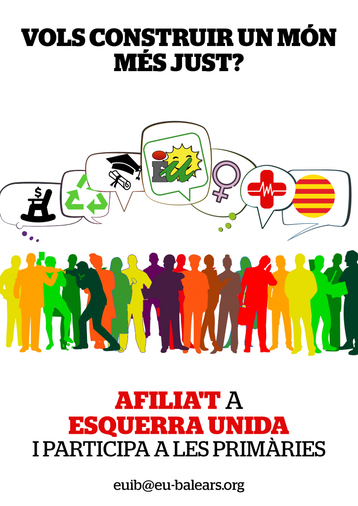 Juanjo Martínez, Coordinador General d'EUIB, ha animat «tota la ciutadania d'esquerres, amb sensibilitats feministes, ecologistes i de classe, a afiliar-se per tal de participar en les primàries, sigui participant de les candidatures, de l'elaboració del programa o elegint als representants que hauran de representar a EUIB i a la classe treballadora a les institucions».