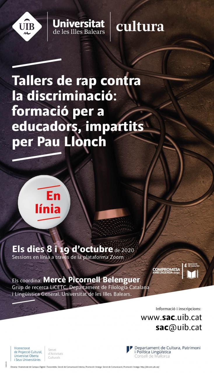 - Dijous, 8 d’octubre de 2020. «Experiències de taller de rap per a la convivència a l'educació secundària». Horari: de 17 a 19 h. Destinataris: professors de Llengua i Literatura Catalanes a instituts d'educació secundària i altres professionals del món de l'educació.