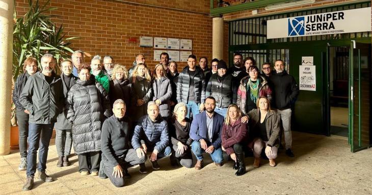 Aquest dilluns, 4 de desembre, part del professorat del CIFP Juníper Serra, a Palma, ha fer una petita trobada a l’entrada principal del centre per a fer una fotografia de tothom que ha volgut donar el seu suport a la iniciativa 'La llengua no es toca'. Aquesta iniciativa ja ha estat seguida per un centenar de centres de Mallorca per a mostrar rebuig al pla de segregació lingüística a les aules del Govern.