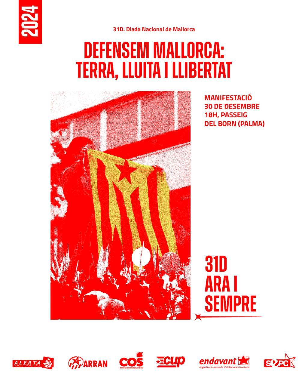 El lema escollit enguany, ‘Defensem Mallorca: terra, lluita i llibertat, reflecteix «la necessitat d’enfortir la resistència davant els atacs constants contra la llengua, la cultura i el territori», alhora que apel·la a la construcció d’una Mallorca i uns Països Catalans lliures.