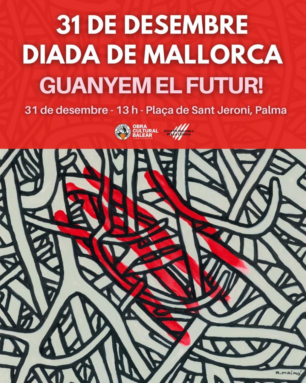 Per primera vegada, l'Obra Cultural Balear (OCB) i Joves de Mallorca per la Llengua organitzen un acte per a celebrar la Diada de Mallorca, el pròxim dimarts, 31 de desembre, a les 13 hores a la plaça de Sant Jeroni de Palma.