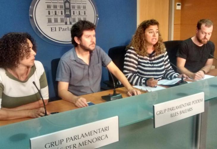 Patrícia Font de Més per Menorca, Alberto Jarabo de Podem, Pilar Costa del PSIB-PSOE i David Abril de Més per Mallorca durant la roda de premsa d'aquest dilluns | Foto: Podem