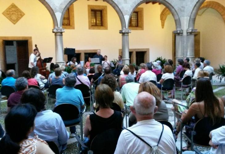 El Claustre de l'Estudi General Lul·lià ha acollit aquest dimecres les cançons de Comiat, Els infants, Vou-veri-vou per a no dormir o Siau qui sou!, de Guillem d'Efak en les veus de Maria Rosselló i Biel Majoral.