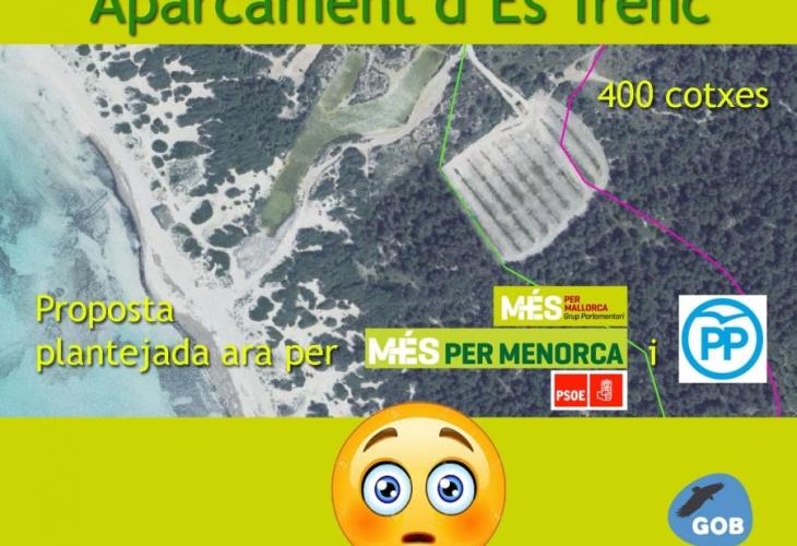 Atenent a aquest i altres informes, la Conselleria de Medi Ambient elevà proposta al Consell de Govern, que aprovà l’avantprojecte de llei el passat 13 de gener de 2017 on s’estableix la supressió de l’aparcament d’Es Trenc i la restauració ambiental de la zona degradada. Però la setmana passada, en el tràmit de presentació d’esmenes parlamentàries, els partits del mateix govern «realitzaren una jugada escandalosa», segons explica el GOB.