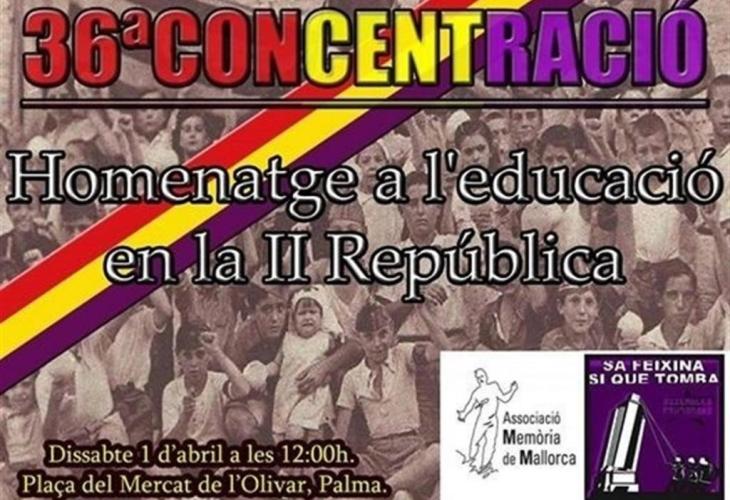 Sa Feixina sí que tomba i Memòria de Mallorca sortiran aquest dissabte al carrer per reivindicar i homenatjar l'educació en la segona República coincidint amb el 81è aniversari de la seva instauració.