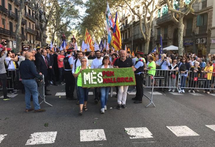 La portaveu de MÉS per Mallorca, Bel Busquets, ha assegurat que «avui més que mai calia que fóssim a Barcelona, a donar suport al poble català en la seva ànsia democràtica de decidir lliurement el seu futur. La solidaritat és la poesia entre els pobles, i MÉS per Mallorca sempre estarem devora la gent que demani democràcia i llibertat». La formació ecosobiranista ha assegurat que a Catalunya «s'està vivint el principal procés de ruptura amb el règim corrupte, centralitzador i oligàrquic imperant a l'Estat espanyol; per això, més enllà de si simpatitzam amb el sí o el no, tots els progressistes hem de saludar el referèndum de l'1 d'octubre».