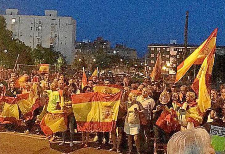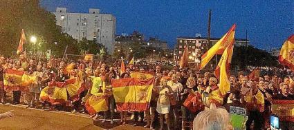 Prop de 100 persones, la majoria familiars de guardia civils espanyols destinats a Mallorca, s'han manifestat aquest dissabte davant de la Comandància de la Guàrdia Civil de Palma, al costat dels pisos que acullen la majoria de manifestants.