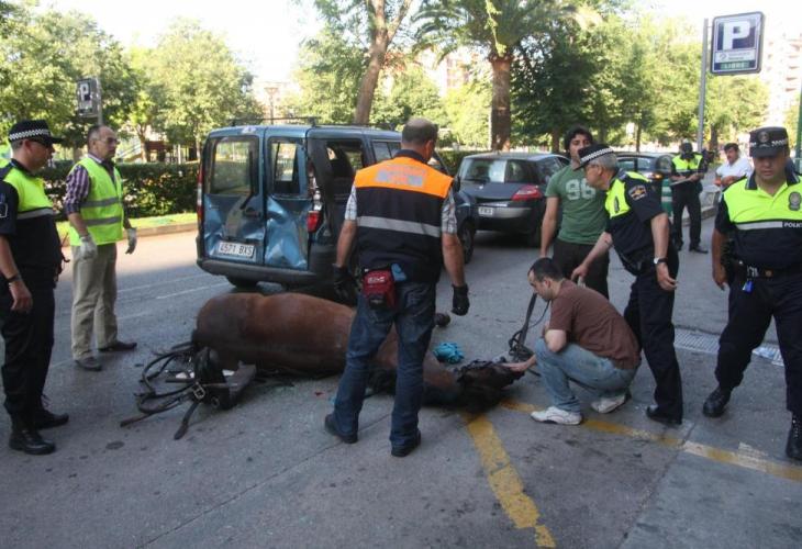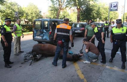 Un cavall d'una galera s'ha desbocat i ha xocat contra els cotxes a Palma