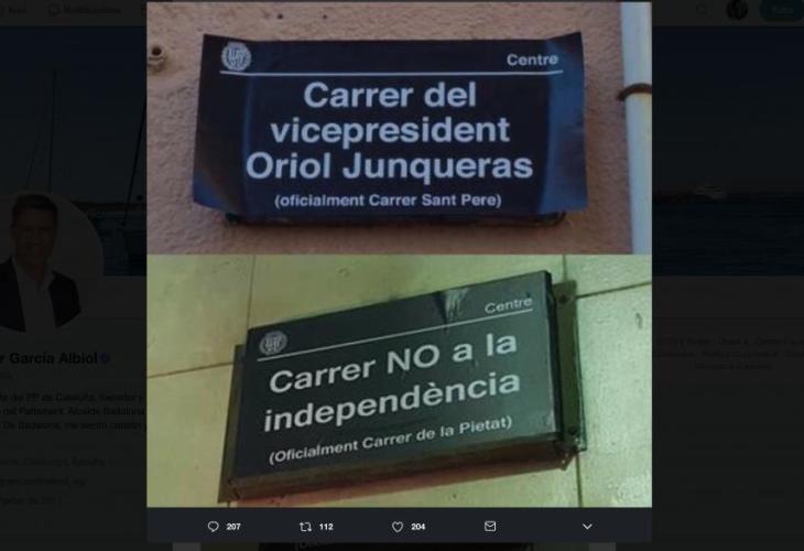 Què li ha passat a Albiol? El president del Partit Popular de Catalunya i exbatle de Badalona ha titllat de «lamentable» la tapada de plaques als carrers de Badalona per part d?un grup d?espanyolistes.