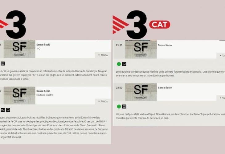 La versió de TV3 que rebem a les Balears, TV3.CAT, no té previst oferir aquest reportatge, sinó que fa comptes oferir la reemissió d'altres reportatges oferits dins el programa Sense Ficció.