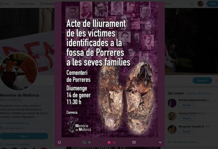 Aquest dijous Memòria de Mallorca ha anunciat per xarxes socials el que molta gent esperava des de fa temps. El proper diumenge, 14 de gener, les víctimes identificades a la fossa comuna de Porreres tornen a casa.