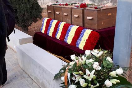 L’acte s’ha celebrat en el Mur de la Memòria i les diferents caixes amb les restes han estat acompanyades d’un centre de flors amb els colors republicans.