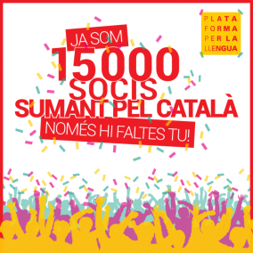 No obstant això, des de la Plataforma expliquen que per a continuar creixent i fer que les accions de l'entitat tenguin encara més incidència en la societat, «necessitem augmentar els suports i el nombre de socis». «Des de la Plataforma per la Llengua volem agrair als qui ja en sou socis la vostra implicació durant tot aquest temps, i desitgem que puguem continuar treballant plegats pel català durant molts anys».