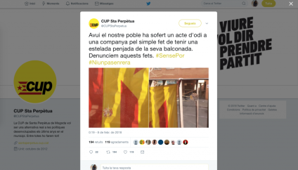 Denuncien haver rebut trets de balins «per tenir una estelada penjada al balcó»