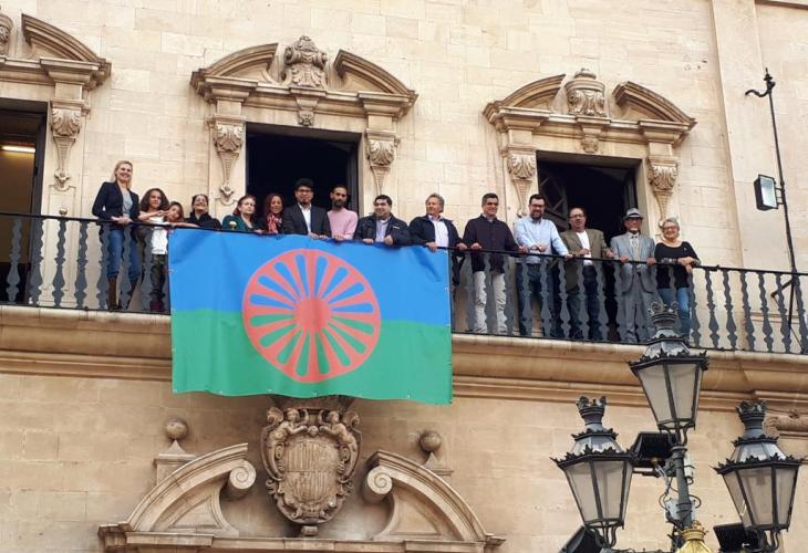 En finalitzar les intervencions, els assistents han escoltat l'himen gitano i han sortit al balcó per mostrar la bandera del poble gitano que estarà durant tot el cap de setmana penjada al balcó de l'ajuntament.