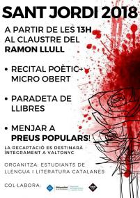 Amb motiu del dia de Sant Jordi, el pròxim dilluns 23 d’abril els estudiants de llengua i literatura catalanes han organitzat un acte en el claustre de l’edifici Ramon Llull de la UIB que tendrà lloc a partir de les 13.00 hores.