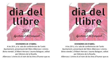 A la sala de conferències de l’antic Ajuntament del municipi es presentarà el llibre ‘Albercocs i cireres. Bona vianda!’ d’Albert Herranz i Jaume Balaguer.