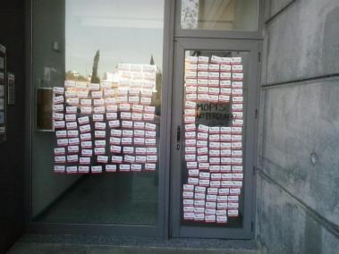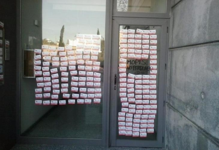 La reivindicació consisteix en un missatge que resa: «Mopis no perdonen». I va acompanyat de prop d’un centenar d'adhesius de la campanya 'Ciutat lliure d’especuladors'.