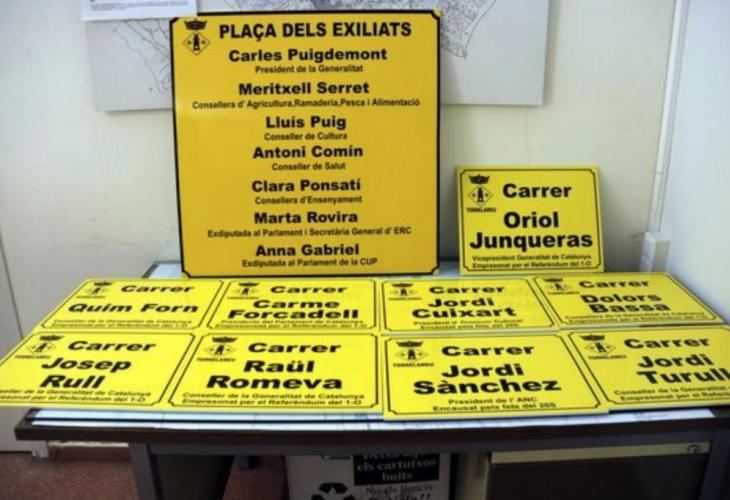 Així mateix, la plaça de l’Església es convertirà en la de 'Els Exiliats', en homenatge als polítics a Alemanya, Bèlgica, Escòcia i Suïssa, i portarà els noms de Carles Puigdemont, Antoni Comín, Meritxell Serret, Lluís Puig, Clara Ponsatí, Marta Rovira i Anna Gabriel.