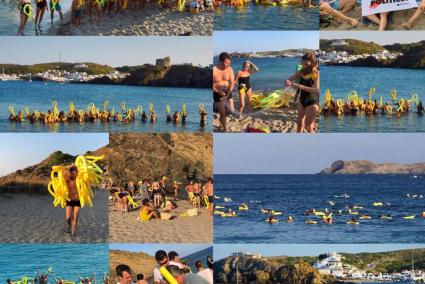 Més de 40 nadadors mostraren aquest passat dissabte la seva solidaritat amb l'exconseller d'Exteriors, Raül Romeva i amb la resta de presos polítics catalans, en un acte a la platja de Sa Mesquida.