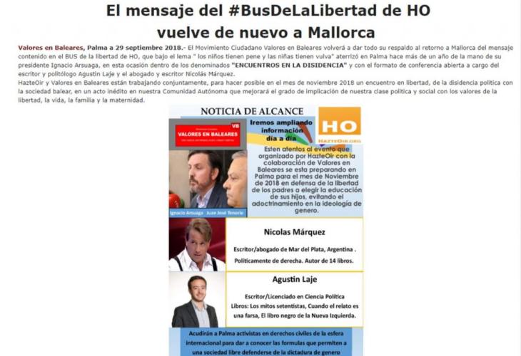 L'entitat ultraconservadora 'Valores en Baleares' tornar a donar ales a LGTBI fòbia | Foto: Valores en Baleares