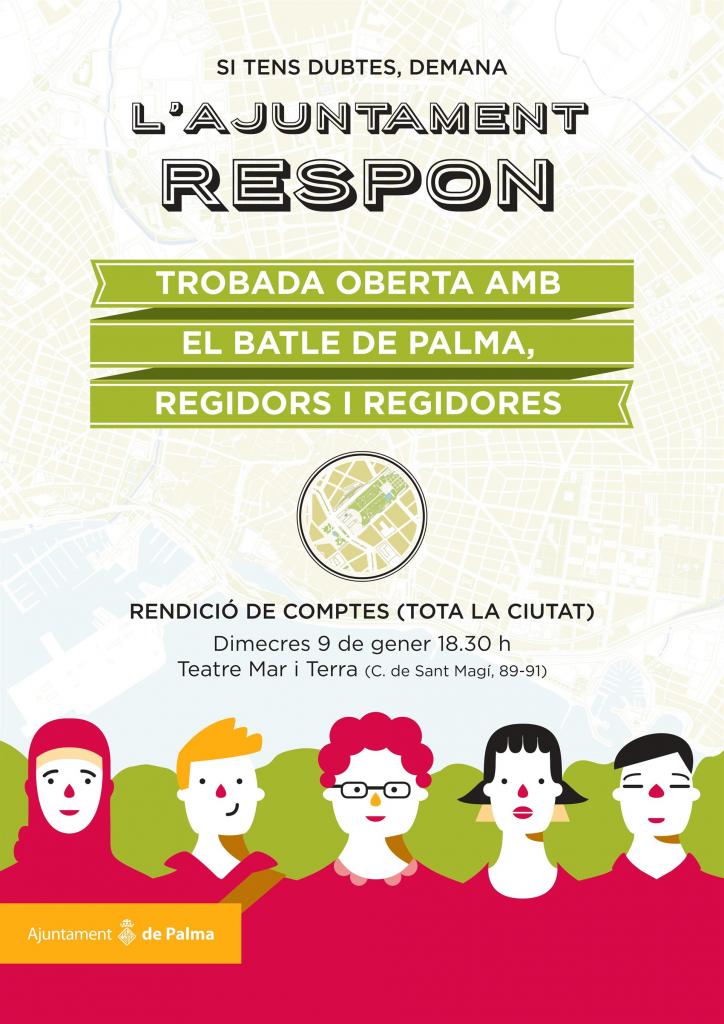El batle de Palma, Antoni Noguera, i els regidors de Cort celebraran dimecres que ve, 9 de gener, a les 18.30 hores una audiència pública oberta a tota la ciutadania i que tendrà lloc en el teatre Mar i Terra.