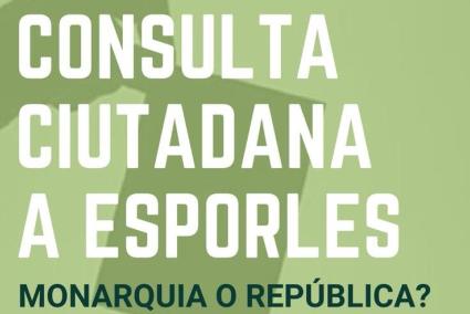 Aquest diumenge matí s'ha fet una assemblea convocada per l'Ateneu Popular d'Esporles en la qual s'ha decidit constituir un grup de treball per organitzar una consulta sobre monarquia o república al municipi.