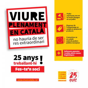 «25 anys després, estem orgullosos d'haver aconseguit grans avenços pel que fa a la normalització i promoció de la llengua catalana, orgullosos de treballar per la defensa dels drets lingüístics dels seus parlants. Però a la vegada som conscients que no n'hi ha prou», han explicat des de l'ONG del català.