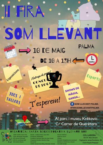 Aquest divendres entre les 10 i les 13.00 hores se celebra al parc i al Museu Krekovic la II Fira Som Llevant Palma que comptarà amb espectacles de màgia i dansa, esports, jocs i tallers i un concurs per escollir el logotip de Som Llevant Palma.