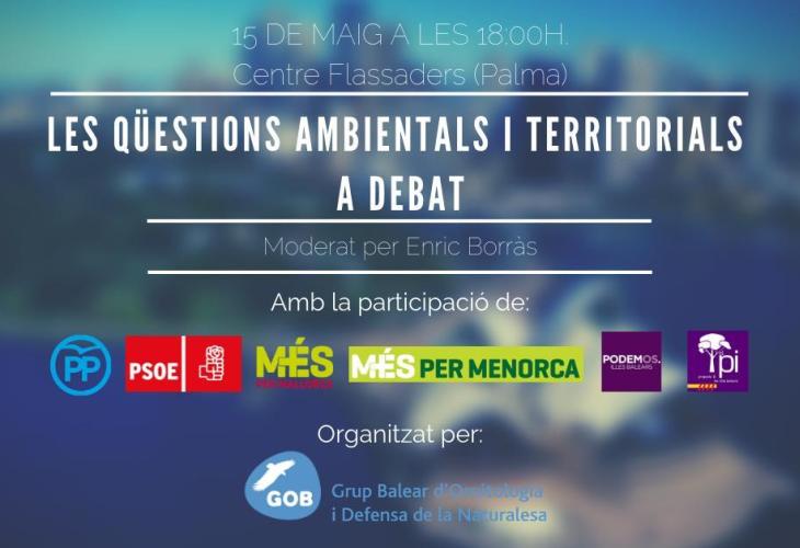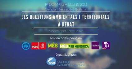 Amb motiu de les eleccions autonòmiques i municipals, l'entitat ecologista GOB ha organitzat un debat electoral sobre les qüestions ambientals i territorials «per tal de conèixer les corresponents propostes dels diferents partits polítics davant d'assumptes que consideram primordials».