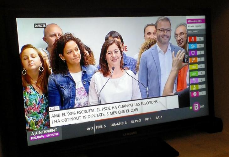 Alegria a la seu del PSIB-PSOE. Francina Armengol, presidenta del partit, ha valorat aquest diumenge molt positivament els resultats de les eleccions que li donen la possibilitat de revalidar la presidència del Govern.