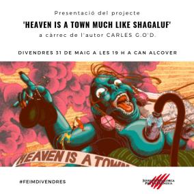 En aquesta edició del Feim Divendres de Joves de Mallorca per la Llengua, l'autor del projecte 'Heaven is a town much like Shagaluf', Carles G.O'D., presentarà la seva obra, un macrodibuix que va trigar 2 anys a fer-se, que presenta una visió crítica en clau humorística de la indústria del turisme a nivell local i global.