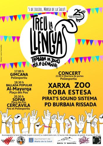 La diada ‘Treu la Llengua’, organitzada per Joves de Mallorca per la Llengua per celebrar el 25è aniversari de l’entitat, ha tengut una resposta molt positiva. Les entrades per assistir al concert s'havien exhaurit pràcticament aquest dimecres horabaixa, quan falten més de dues setmanes perquè es faci. No obstant això, des de l'entitat han explicat que hi haurà 50 entrades més, només disponibles el mateix dia de la celebració a la taquilla.