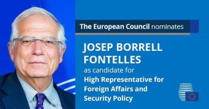 Els líders europeus han triat Josep Borrell, actual ministre d'afers exteriors del Regne d'Espanya, per substituir Federica Mogherini com a diplomàtic superior de la Unió Europea. Borrell, és membre del PSOE, va ser president del Parlament europeu i candidat número 1 a les llistes europees del seu partit.