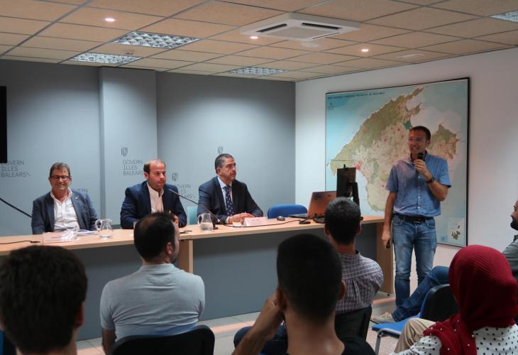 El conseller de Medi Ambient i Territori, Miquel Mir; el rector de la Universitat de les Illes Balears (UIB), Llorenç Huguet; el director del Centre d’Institucions de CaixaBank a les Illes Balears, Hilari Llabrés, i el director de l’Institut d’Investigacions Agroambientals i d’Economia de l’Aigua (INAGEA), Hipólito Medrano, aquest dilluns han presentat el llibre 'Gestió ambiental post-incendi forestal'.