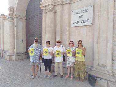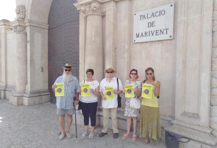 Representants de la plataforma 'Arruix Borbons' s'han concentrat aquest dimarts davant del Palau de Marivent de Palma per a mostrar el seu rebuig a la monarquia i a la presència dels Borbons a Mallorca.