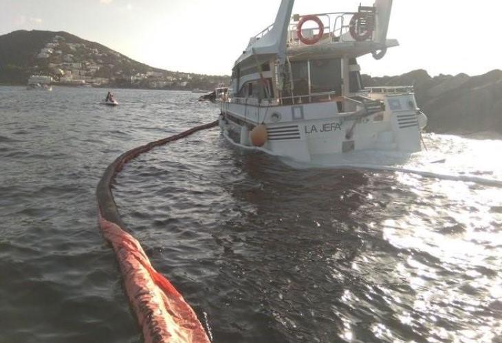 Activat el Pla de Contaminació d'Aigües per una embarcació encallada a les roques a Santa Eulària