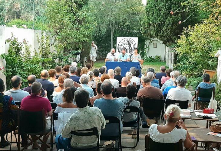 Marcel Mauri, vicepresident d’Òmnium Cultural i Josep de Luis, president de l’Obra Cultural Balear han estat els encarregats d’explicar, al nombrós públic assistent, que ha desbordat la capacitat del jardí, els trets més característics d’aquest llibre i ho han fet en forma de tàndem. L’acte ha estat presentat i conduït per la periodista d’Ara Balears Maria Llull.
