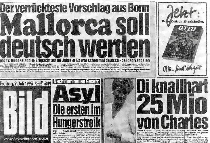 El diari alemany Bild, proclamava a la seva portada del 9 de juliol de 1993: «Mallorca ha de ser alemanya» i recordava que ho havia estat ja sota els vàndals, referint-se a la tribu germànica que va envair l'Hispània romana.