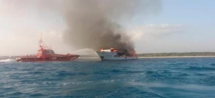 El iot que es va incendiar aquest dissabte en les aigües de la platja d'es Trenc, s'ha enfonsat poc abans de la matinada d'aquest diumenge a cinc milles al sud del Cap Blanc, mentre era remolcat cap a Palma.