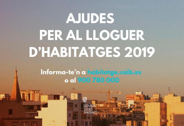 La Conselleria de Mobilitat i Habitatge, a través de l'IBAVI, ha decidit ampliar el termini per a presentar les sol·licituds per als ajuts per al lloguer de la convocatòria de 2019. Estava previst que acabàs el termini dia 4 de novembre, però finalment es podran sol·licitar els ajuts fins el 19 de novembre de 2019. Cal recordar que es pot fer de manera telemàtica o bé a través de les oficines de l'IBAVI repartides arreu de les Illes Balears.