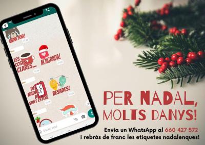 La Direcció Insular de Política Lingüística del Consell de Mallorca ha creat cinquanta adhesius per a felicitar les festes de Nadal per mitjà de WhatsApp. Són adhesius amb motius nadalencs i expressions i paraules que feim servir sovint en les converses de WhatsApp.