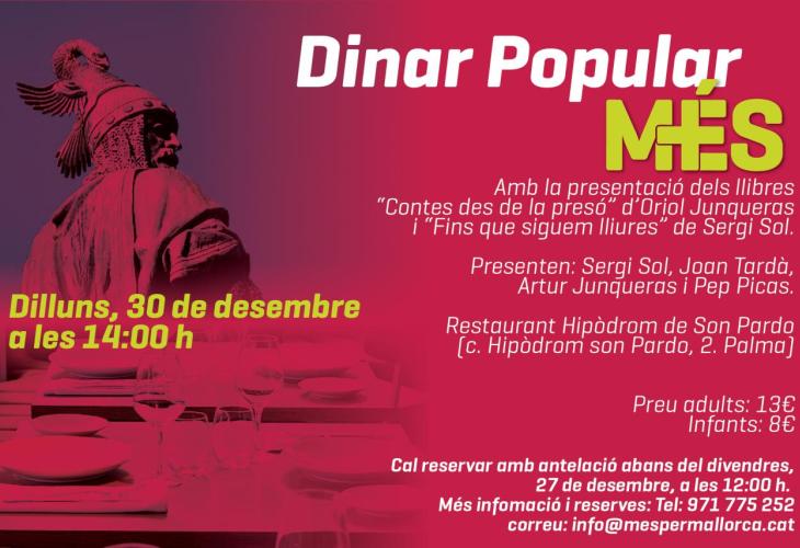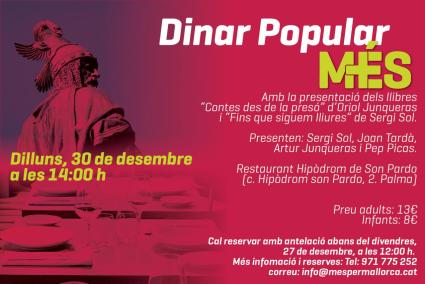 MÉS per Mallorca ha organitzat per al proper dilluns , 30 de desembre, a les 14.00 hores, al restaurant de l'hipòdrom de Son Pardo, un dinar popular amb motiu de la Diada de Mallorca.
