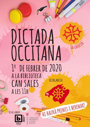 El primer de febrer de 2020 es farà la 3a edició de la Dictada Occitana a Mallorca i 23a des dels inicis del dictat en llengua occitana que es fa simultàniament a més de 40 localitats d'Occitània i els Països Catalans.