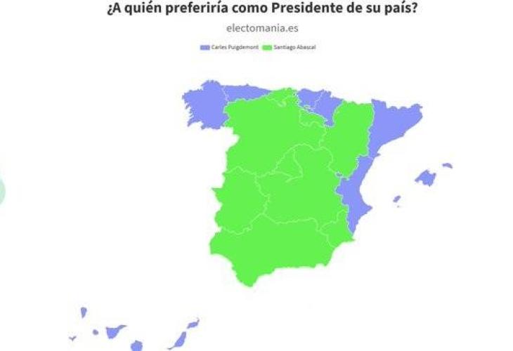 Electomania ha fet una enquesta amb una mostra de 1.500 persones, que es considera prou representativa i ha plantejat un dilema molt extrem però molt clarificador: si només es pogués triar entre el líder del partit ultra Vox, Santiago Abascal, i el president català a l'exili, Carles Puigdemont, a qui triaria?